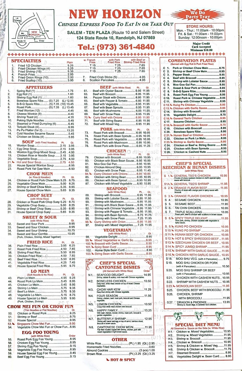 New Horizon Chinese Restaurant Menu